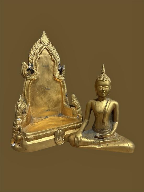 พระศรีสรรเพชญ (พระพุทธทศพลญาณประธานคีรีรักษ์สิริประชาบูชิต หรือ หลวงพ่อปุ้ย) วัดมหาธาตุ โลหะผสมกาหลั่ยทอง 2 ถอด หน้าตัก 5 นิ้ว ฐาน 6.5 นิ้ว สูง 9.5 นิ้ว