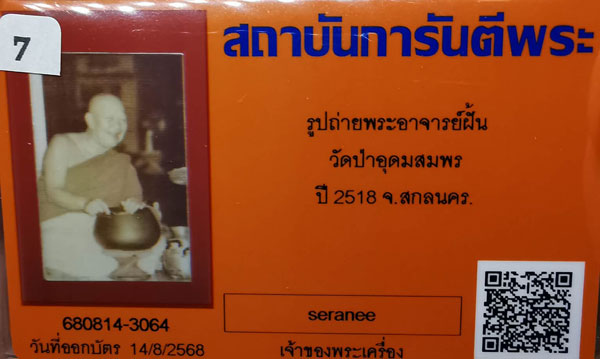 รูปถ่ายพระอาจารย์ฝั้น วัดป่าอุดมสมพร ปี2518 จ.สกลนคร + บัตรG-pra สภาพเดิมค่ะ สภาพตามรูปทุกประการค่ะ