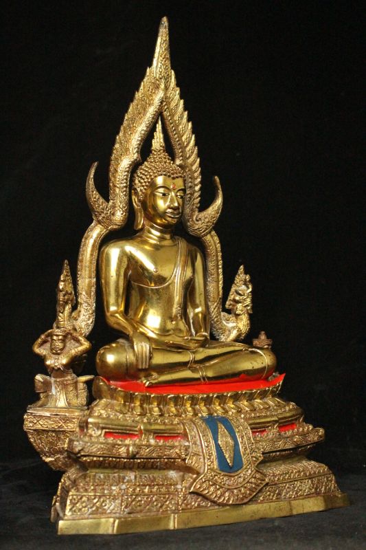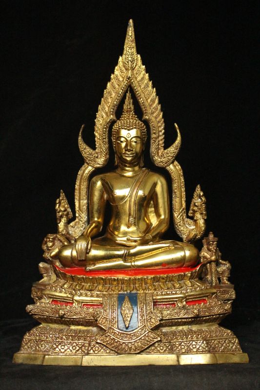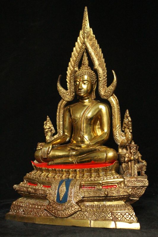 พระพุทธชินราชองค์นี้มีขนาดหน้าตัก 5.9 นิ้วครับ หรือ 6 นิ้วซึ่งขนาดพิเศษ คือจะอยู่ระหว่าง 5 นิ้วและ 7 นิ้ว องค์พระหล่อด้วยเนื้อทองผสม เคลือบผิวทอง แบบยุคพระปี 2530 ปลายๆถึง 40 ต้นๆ ถามว่าเคลือบทองดียังไงเคลือบทองจะต่างจากขัดมันนะครับขัดมันเมื่อบูชาไปนานๆผิวจะกลับเป็นสีดำแต่แบบนี้ถ้าบูชาดีๆผิวก็จะไม่เสียแล้วจะคงความเงางามแบบนี้ตลอดไป องค์พระหล่อแบบฐานสูงย่อมุม 3 ชั้น มีตัวเลขไทยตอกที่องค์พระและที่ซุ้มหมายเลขตรงกัน ออกให้เช่าบูชาที่วัดพระศรีรัตนมหาธาตุ พิษณุโลกหรือวัดหลวงพ่อพระพุทธชินราชชัดเจนไร้ข้อสงสัย งานเก่าๆอายุเกือบ40 ปี งานหล่อสวยละเอียด หล่อแบบ 2 ถอดขอบหนา ถ้าเน้นไว้ตั้งบูชาเพื่อเป็นสิริมงคลองค์นี้รับประกันครับว่าสวยและแท้ออกวัดแน่นอนครับผม