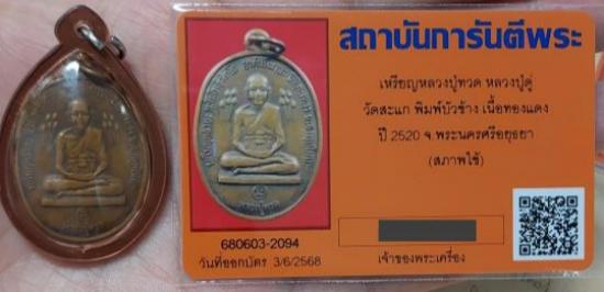 หลวงปู่ทวด พิมพ์บัวข้าง หลวงปู่ดู่ วัดสะแก จ.อยุธยา ปี20 เนื้อทองแดง พร้อมบัตรรับรอง สภาพใช้