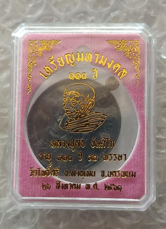 เหรียญมหามงคล ๑๑๓ ปี #เนื้อเหล็กน้ำพี้ หลวงปู่สอ วัดโพธิ์ศรี ตำบลรามราช อำเภอท่าอุเทน จังหวัดนครพนม