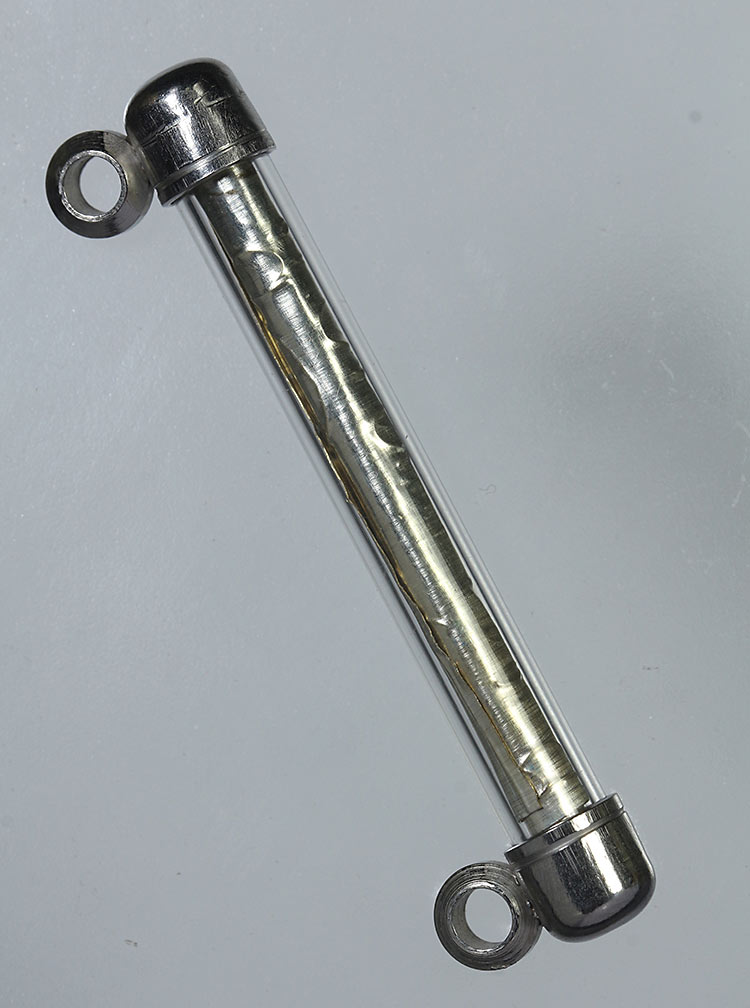 วัดใจ**เครื่องราง ตะกรุดปลดหนี้หรือตะกรุดกันผี กันคุณไสย แผ่นเงิน จารยันต์ด้วยมือ หลวงปู่กาหลง เขี้ยวแก้ว ความยาว 4 ซม. ใส่หลอด...พร้อมซองเดิมๆครับ |