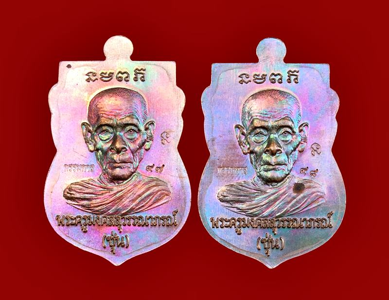 +!!เคาะเดียวllดง ตลอดสาย!!+ (รับ 2 เหรียญ) เสมาหัวโต หลวงปู่ทวด-พ่อท่านซุ่น วัดบ้านลานควาย จ.ปัตตานี รุ่นมงคล88 ปี2558 เนื้อทองแดงผิวรุ้ง เลขเรียงติดกัน เลขสวย 97/98 พร้อมกล่องครับ