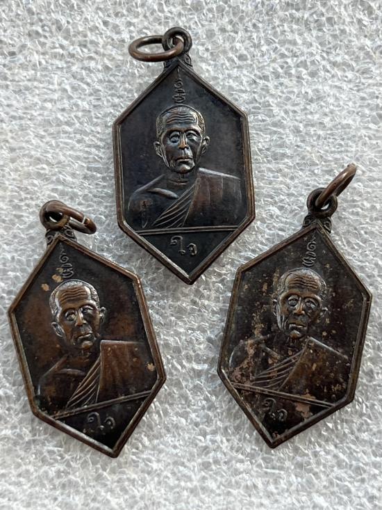 เหรียญหกเหลี่ยมครึ่งองค์ หลวงพ่อใจ วัดบ้านโป่ง จ.ราชบุรี สวยเดิม3เหรียญ
