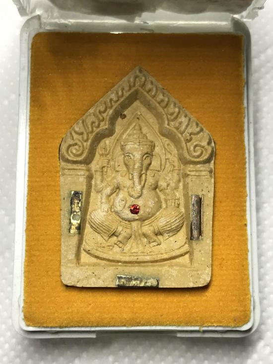 พระพิฆเนศ เนื้อผง ฝังพลอย ตะกรุด 3 กษัตริย์ รุ่น “โชคดีมีสุข” หลวงปู่หงษ์ วัดเพชรบุรี จ.สุรินทร์ ปี2547 พร้อมกล่องเดิม