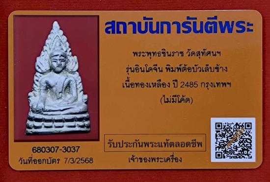 พระพุทธชินราช อินโดจีน ปีพ.ศ.2485 พิมพ์ต้อบัวเล็บช้าง ไม่ตอกโค๊ต(สร้างน้อยกว่าตอกโค๊ต) พิมพ์สวยยยแชมป์ สมบูรณ์ จมูกโด่งๆ++บัตรรับรองพระแท้ G-pra++