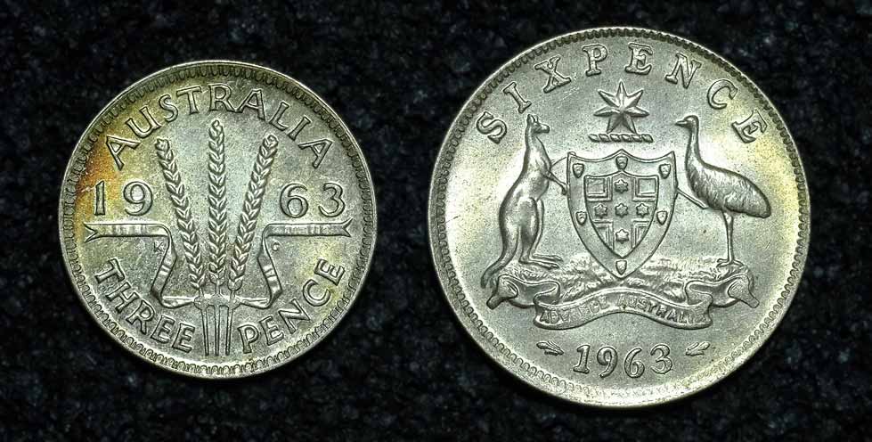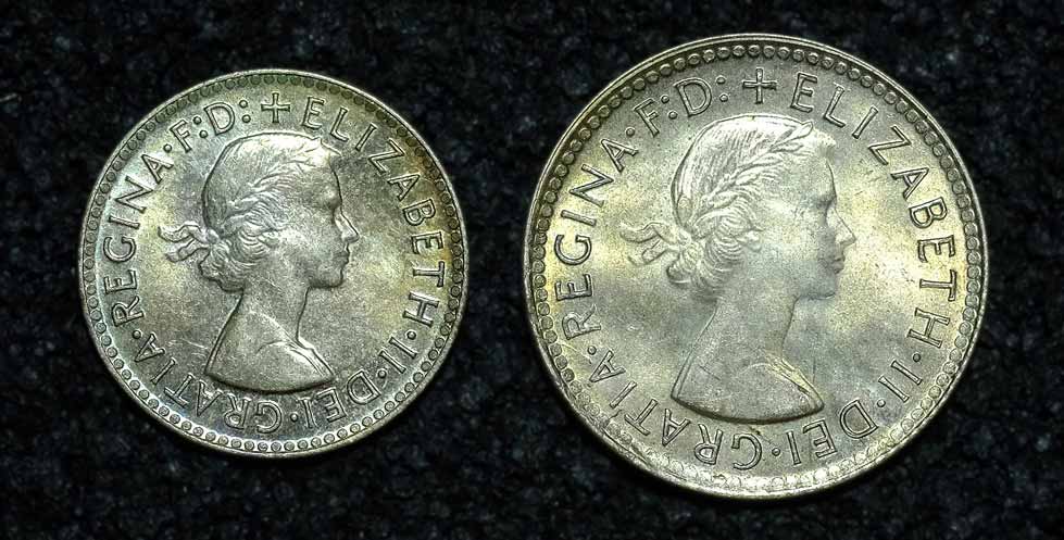 เหรียญกษาปณ์อาณานิคมบริติชออสเตรเลีย - QUEEN ELIZABETH II - ค.ศ.1963 เนื้อเงิน UNC สองเหรียญ