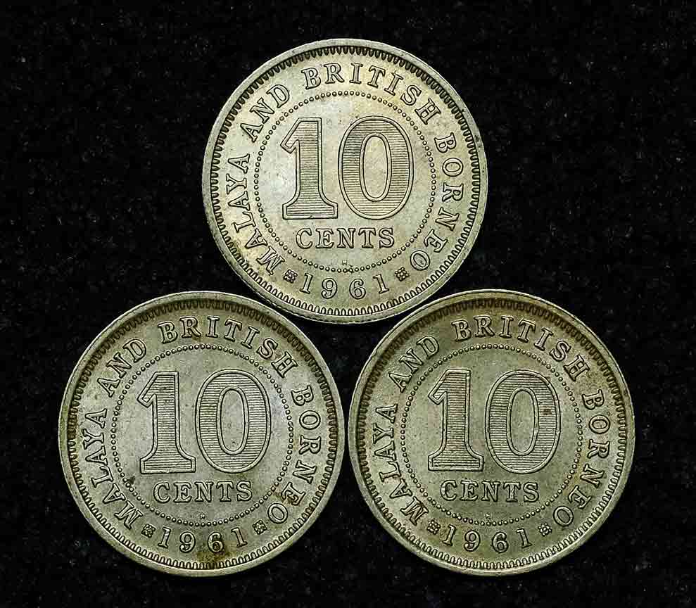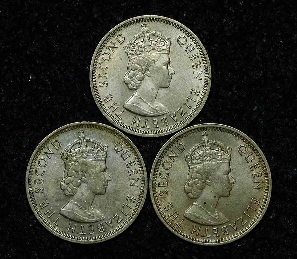เหรียญกษาปณ์อาณานิคมมาลายาและบริติชบอร์เนียว - Queen Elizabeth II - UNC ไม่ผ่านใช้ สามเหรียญ