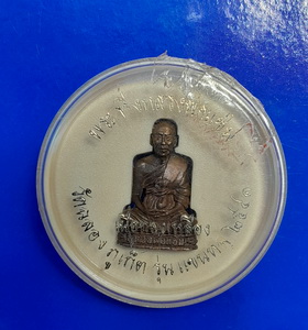 พระกริ่งหลวงพ่อแช่มวัดฉลอง รุ่นแขนทลุ เนื้อทองเหลือง ปี 2541 จังหวัดภูเก็ต พร้อมกล่องเดิมจากวัด |