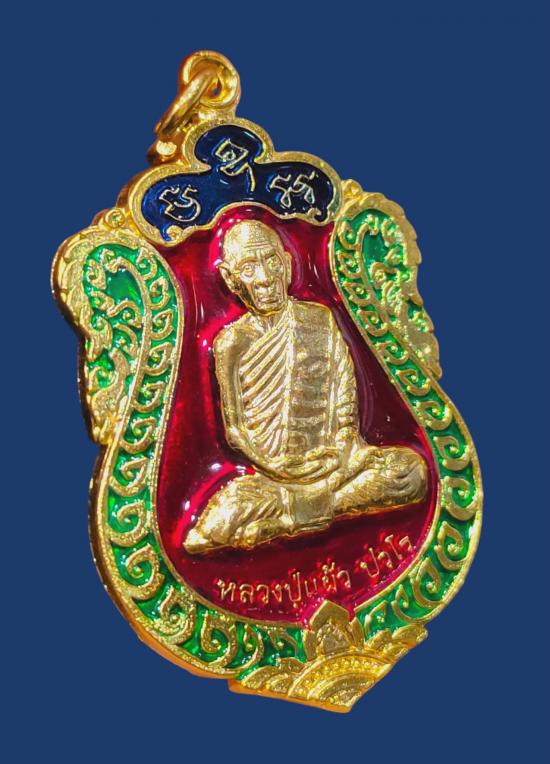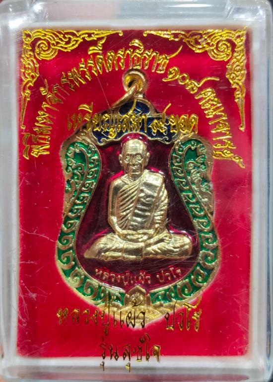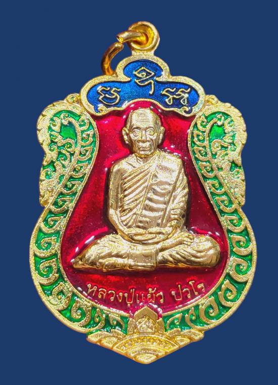 เหรียญเสมาสุขใจ ปี 2550 เนื้อกะไหล่ทองลงยาแดง เลข522 หลวงปู่แผ้ว ปวโร