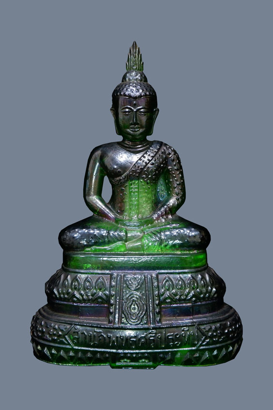 รายละเอียด พระแก้วมรกต 25 พุทธศตวรรษ ปี พ.ศ.2500 เนื้อแก้ว(เขียว)ผิวเคลือบรุ้ง พิมพ์ JAPAN นิยม หายาก! พิธีจัดสร้างยิ่งใหญ่พิธี 25 พุทธศตวรรษ.