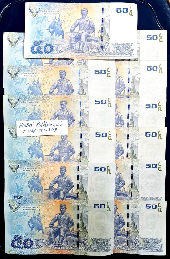 ธนบัตร ร 9 ชนิดราคา 50 บาท แบบ 16 ผ่านใช้ เลข 9หน้า-9หลัง 13 ใบ