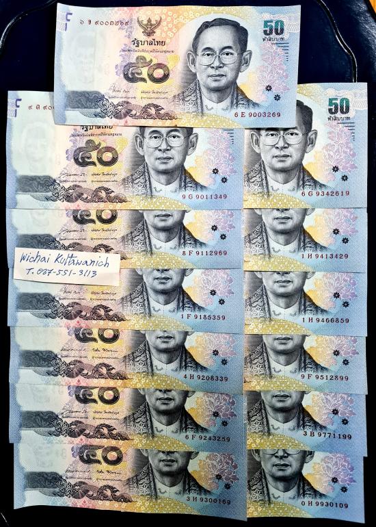 ธนบัตร ร 9 ชนิดราคา 50 บาท แบบ 16 ผ่านใช้ สภาพสวยๆ เลข 9หน้า-9หลัง ทุกใบ จำนวน 13 ใบ เคาะเดียวช่วยค่าจัดส่ง