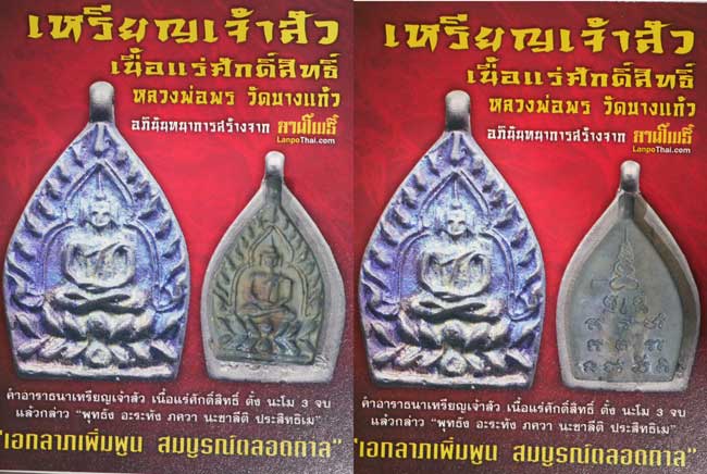 เป็นที่ทราบกันดีว่าเหรียญเจ้าสัวที่โด่งดังอันดับหนึ่งของประเทศต้องยกให้ เหรียญเจ้าสัวในสายวัดกลางบางแก้ว โดยเหรียญเจ้าสัวที่สร้างโดยหลวงปู่บุญมีสนนราคานับล้านบาท เหรียญเจ้าสัวรุ่นต่อมาหรือเหรียญเจ้าสัว 2 ที่สร้างโดยตำรับวัดกลางบางแก้วปี 2535 ปัจจุบันมีสนนราคาสูงและหายาก นับจากนั้นเป็นต้นมาตำราการจัดสร้างเหรียญเจ้าสัวในสายวัดกลางบางแก้วได้ถูก ปิดผนึกลงจนเกือบจะกลายเป็นตำนานแต่โชคดีที่ในปี 2555 นี้ ศิษย์เอกในสายวัดกลางบางแก้วอย่างหลวงพ่อพรได้ดำริจัดสร้างเหรียญเจ้าสัว รุ่นแรกของท่านขึ้นโดยจัดสร้างตามตำราของหลวงปู่บุญและวัดกลางบางแก้วทุก ประการทำให้ผู้คนต่างสนใจและจับจองกันเป็นเจ้าของอย่างท่วมท้นด้วยว่าเป็น เหรียญเจ้าสัวรุ่นที่ 3 ในตำรับวัดกลางบางแก้วและเป็นเหรียญเจ้าสัวรุ่นแรกของหลวงพ่อพรและที่สำคัญ ที่สุดคือ "จัดสร้างเท่าจำนวนที่สั่งจองเท่านั้น" ไม่มีเผื่อเหลือเผื่อขาด วันนี้ชื่อเสียงของ พระครูพิจิตรสรคุณ (พร ปภากโร) แห่งวัดบางแก้ว อ.นครชัยศรี จ.นครปฐม ดังกระหึ่มทั่วสารทิศ ในฐานะพระปฏิบัติดีปฏิบัติชอบและพุทธาคมแกร่งกล้าไม่เป็นรองใคร ปลุกเสกวัตถุมงคลทุกรุ่นล้วศักดิ์สิทธิ์เข้มขลัง เป็นที่แสวงหาของผู้ศรัทธาและนักสะสมวัดบางแก้ว |