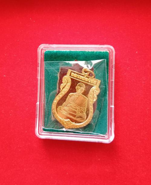 หลวงพ่อวิชัย วัดหัวเด่น เหรียญเสมาหลังสิงห์(ไตรมาส 64)เนื้อทองนพเก้า