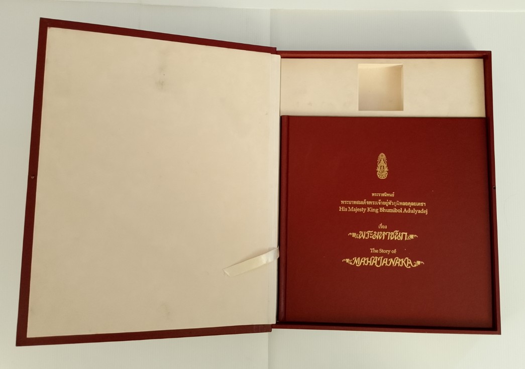 หนังสือพระมหาชนกเล่มใหญ่ ปกหนังอย่างดี เก็บรักษาอย่างดี สภาพสวยเดิมเก็บรักษาอย่างดี เข้าชุดกับเหรียญเพื่อเพิ่มมูลค่าและคุณค่า หายากมากแล้วครับ