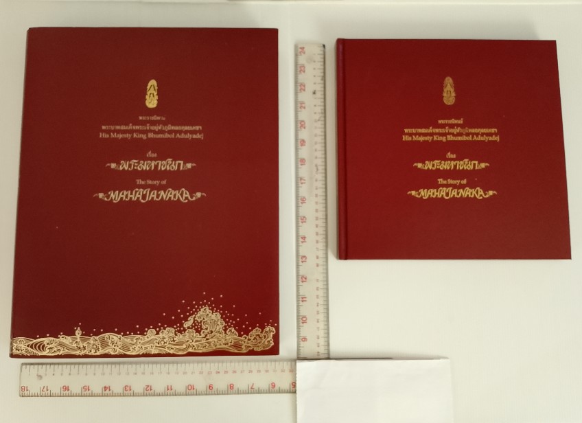 หนังสือพระมหาชนก *ปกหนัง* เล่มใหญ่มากคับ ขนาด 41.5 x 33 ซม. สวยเดิมๆ สมบูรณ์เกือบ 100% (ไม่มีเหรียญ)เข้าชุดกับเหรียญเพิ่มคุณค่าและมูลค่า หายากแล้วครับ