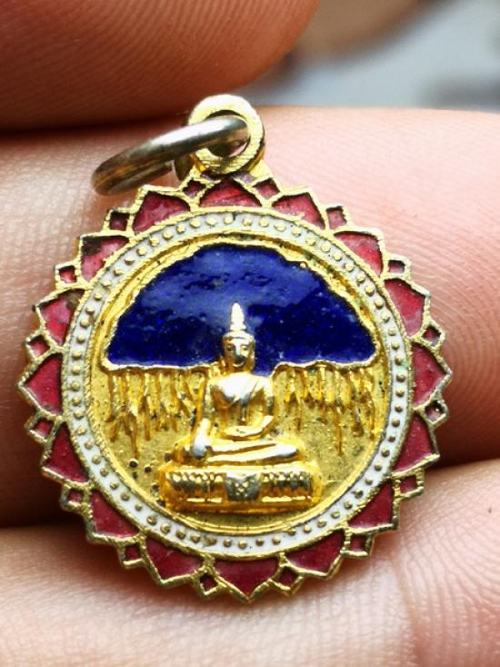 เหรียญหลวงพ่อทองคำ วัดไทรใหญ่ พิมพ์กงจักร กะไหล่ทองลงยาสีธงชาติ สภาพตามรูป ราคาเบาๆ