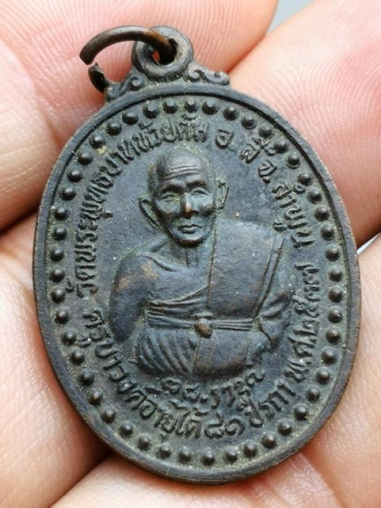 เหรียญครูบาวงศ์ บุญอายุ 81 ปี พ.ศ. 2537 วัดพระพุทธบาทห้วยต้ม จังหวัดลำพูน เนื้อทองแดงรมดำ สภาพตามรูป ราคาเบาๆ