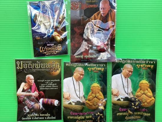เคาะเดียงแดง 100 ( 5 รายการ ) พระปิดตาพญากบคำ 2 องค์ , ตะกรุดมอญพันหลัก 1 ดอก , ตะกรุดแก้วมณีโชค สารพ้ดนึก 1 ดอก , ลูกสะกดใจ รักแรกพบ 1 อัน