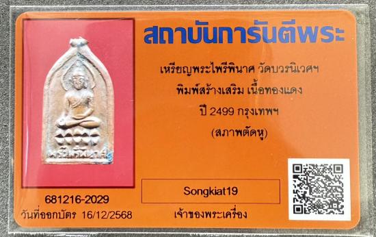 เหรียญพระไพรีพินาศ วัดบวรนิเวศ ปี 2499 สภาพตัดหู พร้อมบัตรฯ
