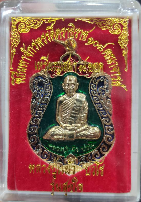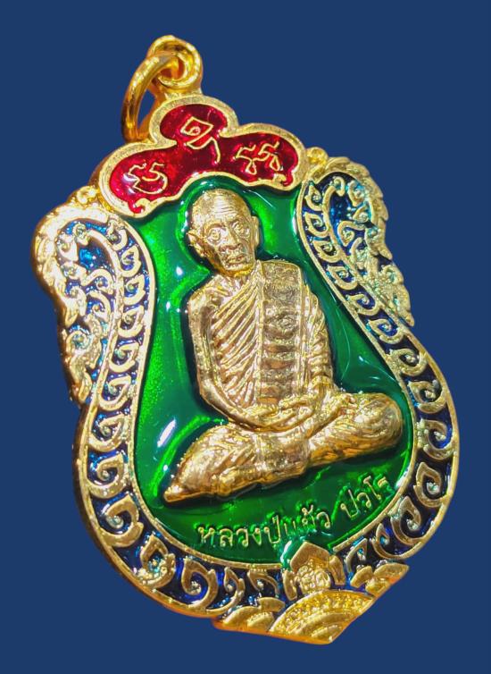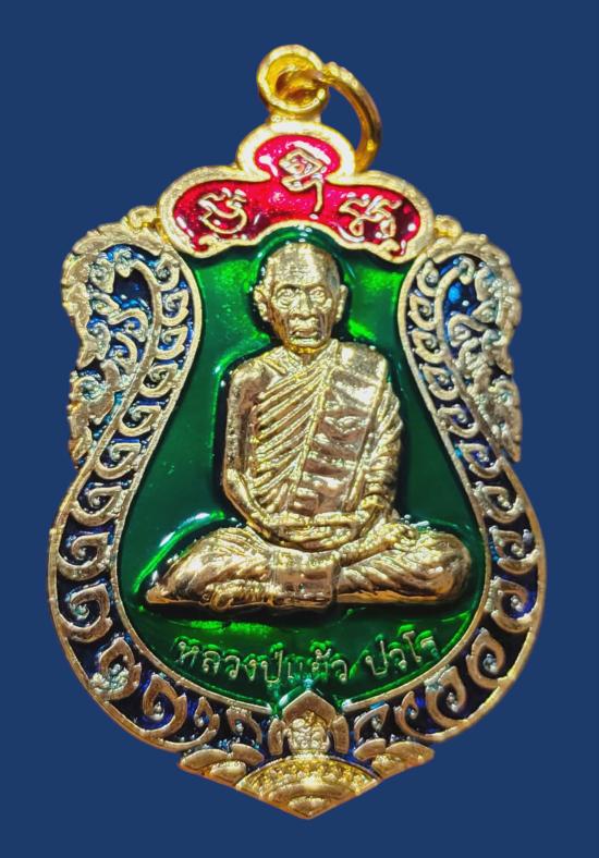 เหรียญเสมาสุขใจ ปี 2550 เนื้อกะไหล่ทองลงยาน้ำเงิน เลข522 หลวงปู่แผ้ว ปวโร