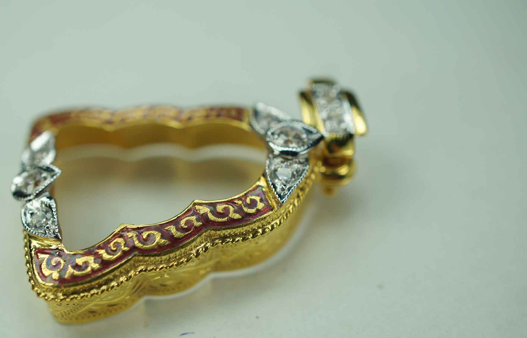 กรอบทองคำ ใส่พระปิดตาข้าวตอกแตก หลวงปู่ทิม ลงยาสีแดง ห่วงเพชร ฝังเพชร CZ 8 เม็ด ข้างเกลียวโปเต้ งานขึ้นมือ น้ำหนัก 2.65 กรัม เปอร์เซ็นต์ทอง 65-70 เปอร์เซ็นต์ รับประกันตามกฏการันตีพระทุกข้อกำหนด ยินดีจ |