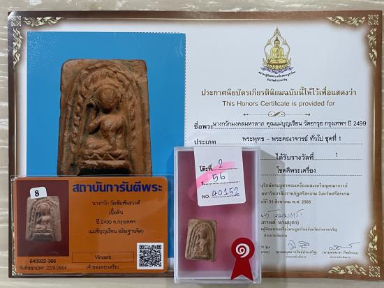 สภาพสวย สมบูรณ์ รับประกันพระแท้ พร้อมใบประกาศงานประกวดสมาคม และบัตรรับรองพระแท่จากสถาบันการันตีพระ