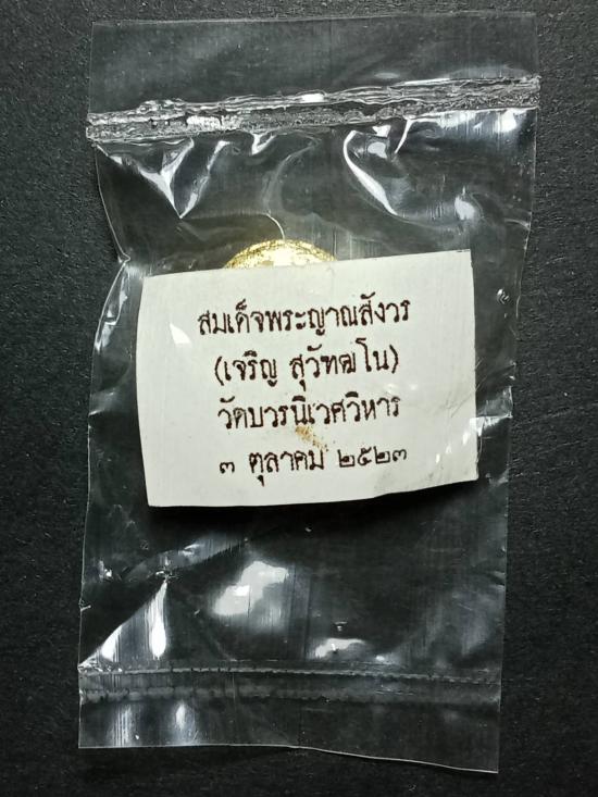 เคาะเดียวในถุงพลาสติคซีลเดิม พร้อมใบฝอย พระปิดตายันต์ดวงเล็ก เนื้อผงเกสรผสมว่าน ๑๐๘ ปิดทองทั้งองค์ ๓ ตุลาคม ๒๕๒๓สมเด็จพระญาณสังวร(เจริญ สุวัฑฒโน ปธ.๙) วัดบวรนิเวศวิหาร |