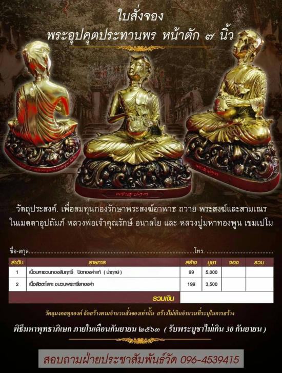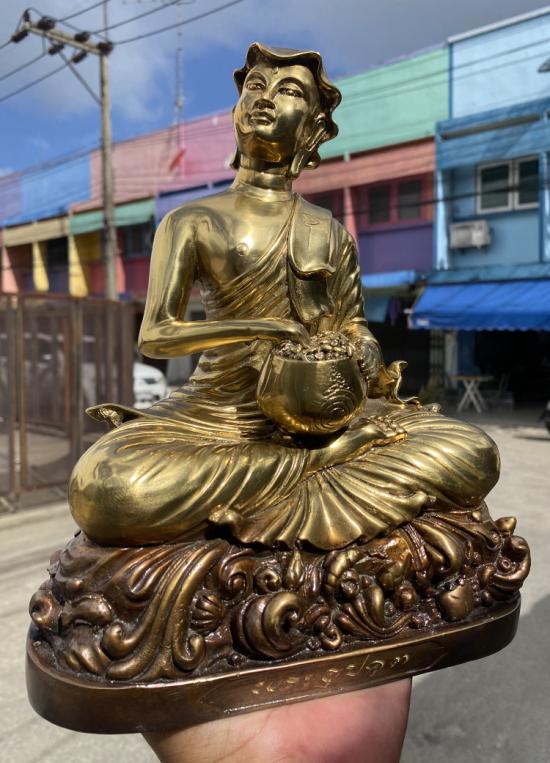 รูปหล่อ พระอุปคุตประทานพร เนื้อเนื้อสัตตะชนวน (ฐาน7นิ้ว) ปิดทองคำแท้