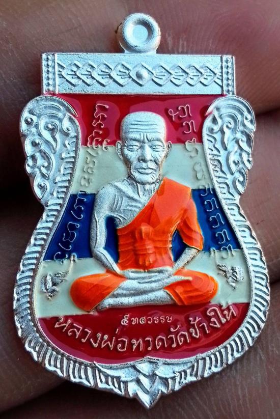 (1)หลวงพ่อทวด รุ่น 5 ทศวรรษ เลื่อนสมณศักดิ์ ปี 58 เนื้อกะไหล่เงินลงยาสีธงชาติ ลงยาจีวร ตอกนัมเบอร์ 259 พร้อมกล่องเดิม สภาพสวย |