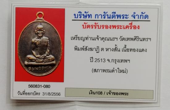 เหรียญนักกล้าม ท่านเจ้าคุณนรฯ วัดเทพศิรินทรฯ พิมพ์สังฆาฏิ (( ต หางสั้น )) เนื้อทองแดง ปี 2513 (สภาพรมดำใหม่) พร้อมบัตรรับรอง ตามรูป