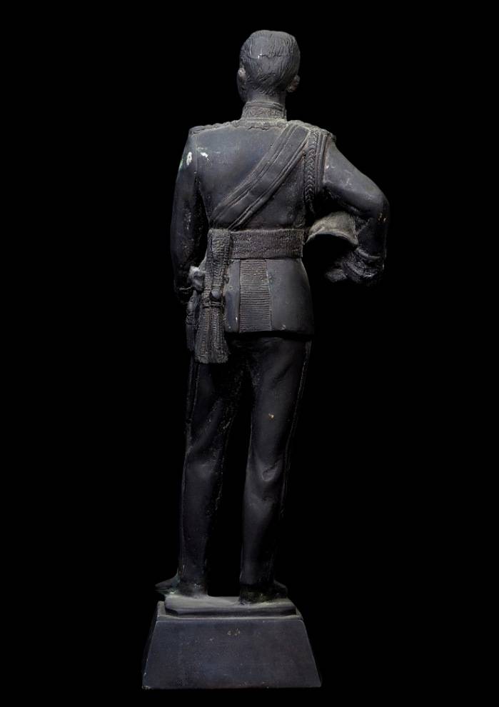 พระบรมรูป รัชกาลที่ 5 ทรงชุดจอมพลเต็มยศเนื้อโลหะเก่า สูง 11.5 นิ้ว พระมีน้ำหนัก หล่อหนา พุทธศิลป์สวยรายละเอียดชัด |
