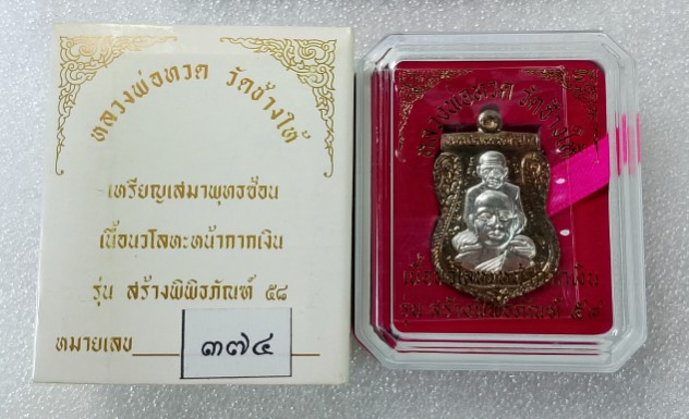 ** เนื้อนวะหน้ากากเงิน * นวะแก่ทองผิวขึ้นรุ้ง เหรียญเสมาพุทธซ้อน รุ่นพิพิธภัณฑ์ ปี 2558 หลวงปู่ทวด วัดช้างให้ จ.ปัตตานี +กล่องเดิมใสๆเหรียญประสบการณ์ระเบิดบิ้กซี สร้างน้อยพบน้อย 2,999 องค์ เลข3หลักสวยๆ 374