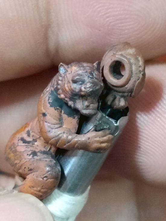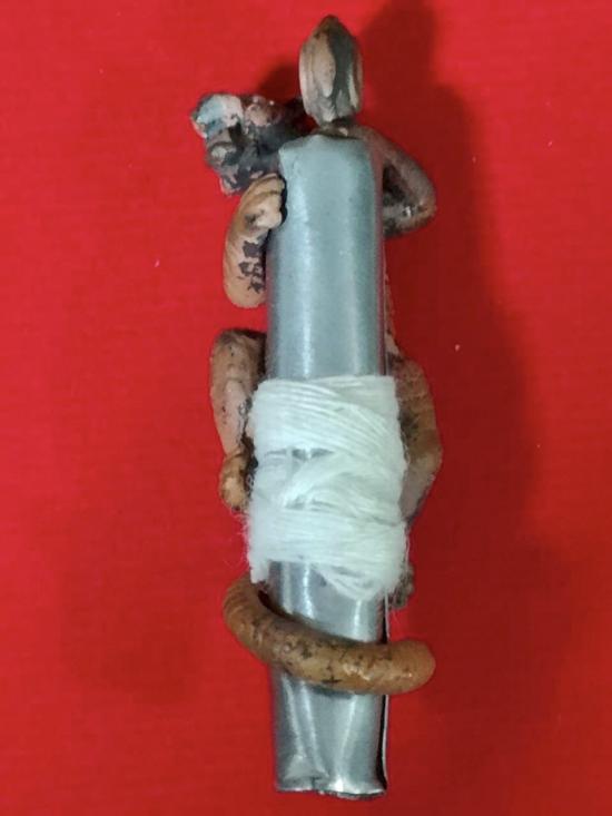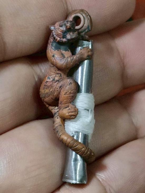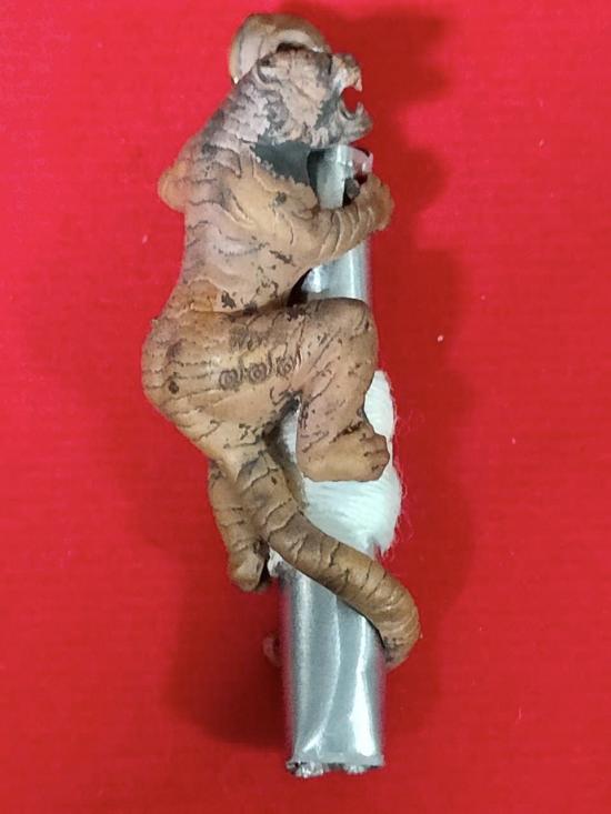 รูปหล่อเสือตะปูสังฆวานรขี่ตะกรุดตะกั่ว พันสายสิญจน์ หลวงพ่อประสูติ วัดถ้ำพระพุทธโกษีย์(วัดในเตา) จ.ตรัง โค๊ต พิเศษ หมายเลข 777