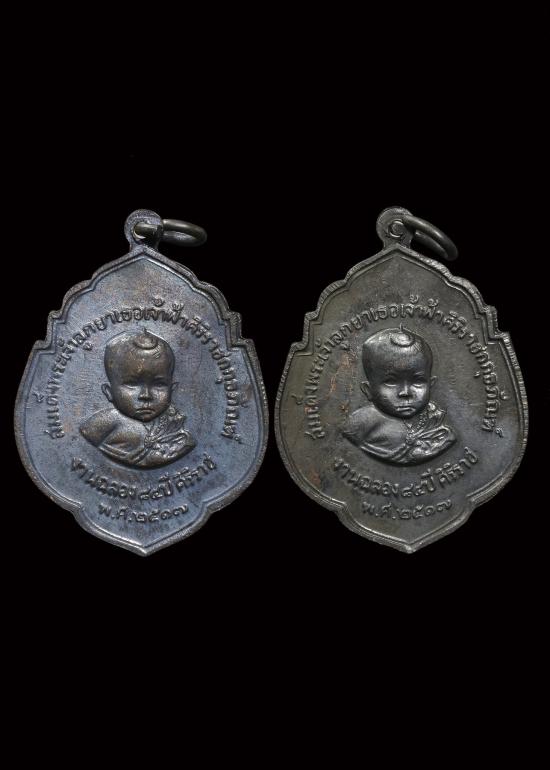 เหรียญพระบรมราชชนก หลังเจ้าฟ้าศิริราช งานฉลอง 84 ปี ศิริราช ปี2517 ((( 2 เหรียญ ))) เนื้อทองแดงรมดำ ผิวเดิม พิธีใหญ่ ลพ.เกษม ลป.สิม ลป.แหวน ร่วมปลุกเสก ฯลฯ
