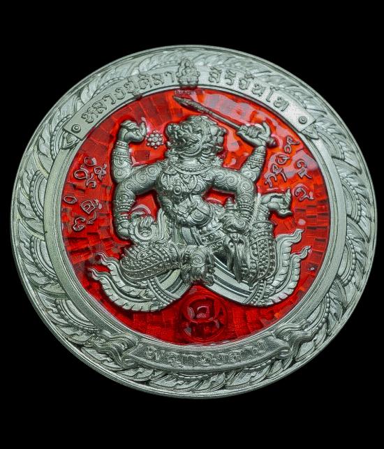 วัดใจ เหรียญพญาชิงดวง หลวงปู่ศิลา เนื้อเงินลงยาแดง เลข 137 สวยๆ มีกล่องครบครับ