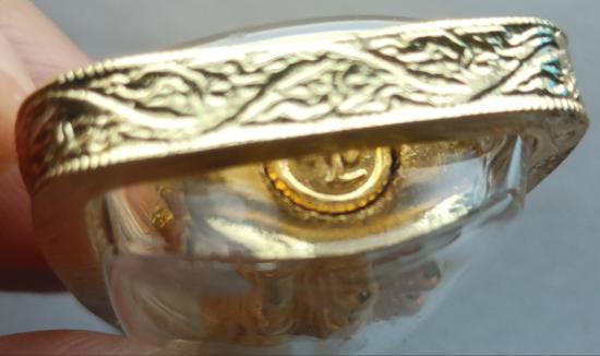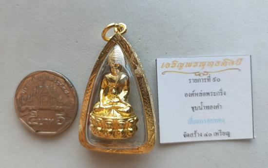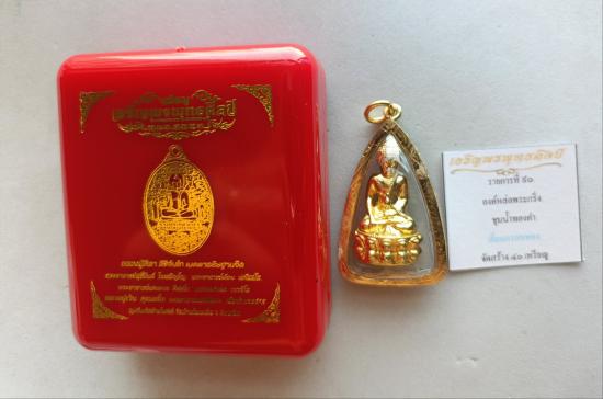 วัดใจเคาะเดียวแดงจ้า พระกริ่ง รุ่นเจริญพรพุทธศิลป์ หลวงปู่ศิลา พระอาจารย์ต้อม หลวงพ่อสุริยันต์ หลวงปู่เวิน เสก เนื้อชุบน้ำทองคำ เลี่ยมกรอบชุบทอง เคาะเดียวแดงจ้า