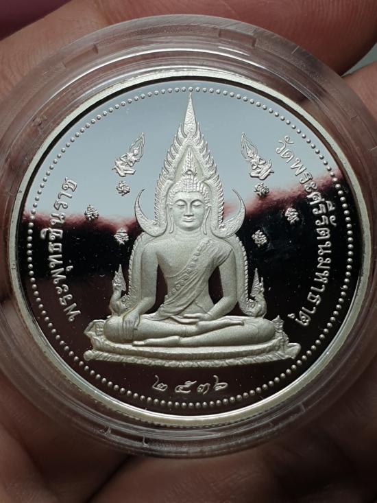 เหรียญพระพุทธชินราชหลังสมเด็จพระนเราศวร เนื้อเงินพ่นทรายขัดเงา บล็อกนอก เพิร์ทมินท์ ออสเตรเลีย สภาพสวย ปี2536 กล่องเดิม