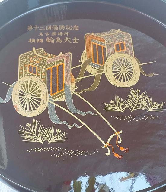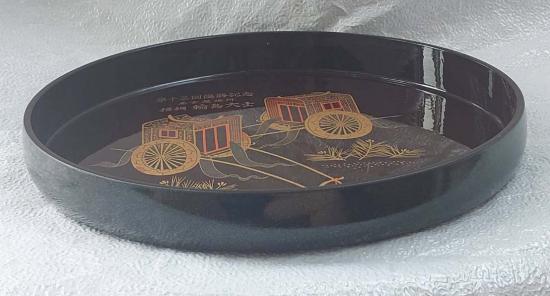 ***วัดใจ***ถาดไม้เคลือบเงาญี่ปุ่นที่ระลึก ลายรถม้าหลวงแบบย้อนยุค ลายเส้นทอง ขนาด 34 ซม.