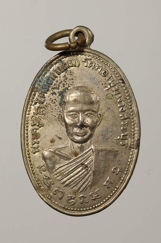 เหรียญหลวงพ่อแถม วัดทองพุ่มพวง จ.สระบุรี ปี 2500 (หลังหลวงพ่อก้อน) เนื้ออัลปาก้า |