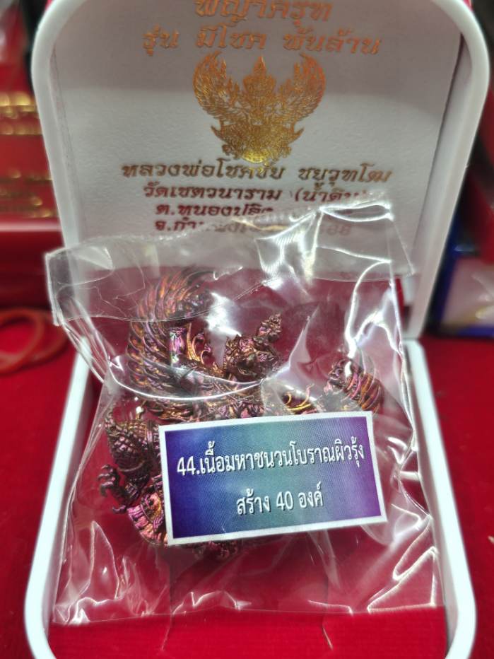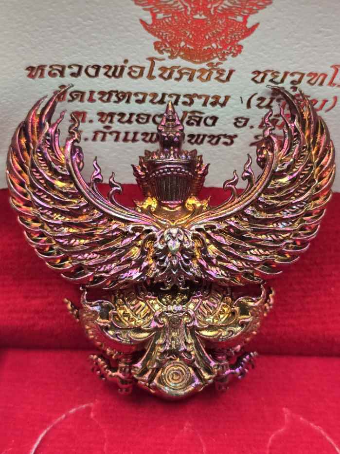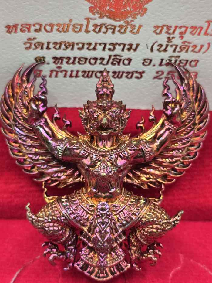 พญาครุฑ รุ่นมีโชคพันล้าน หลวงพ่อโชคชัย วัดน้ำดิบ เนื้อมหาชนวนโบราณผิวรุ้ง สร้าง 40 องค์ หมายเลข 39 |