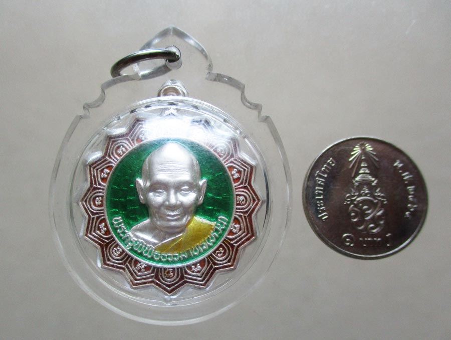 เหรียญพิมพ์พัดยศ หลวงพ่อหวั่น กุศลจิตฺโต วัดคลองคูณ ที่ระลึกสร้างโรงพยาบาลส่งเสริมสุขภาพตำบล พ.ศ.2556 เนื้อเงินลงยา 3 สี ตอก 3 โค๊ต ตอกเลข เลี่ยมกันน้ำพร้อม !!