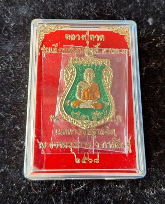 วัดใจ หลวงปู่ทวด หลวงปู่ศิลา เมตตาอธิษฐานจิต รุ่นเลื่อนสมณศักดิ์ เหนือดวง เนื้อทองทิพย์ ลงยา No.2 |
