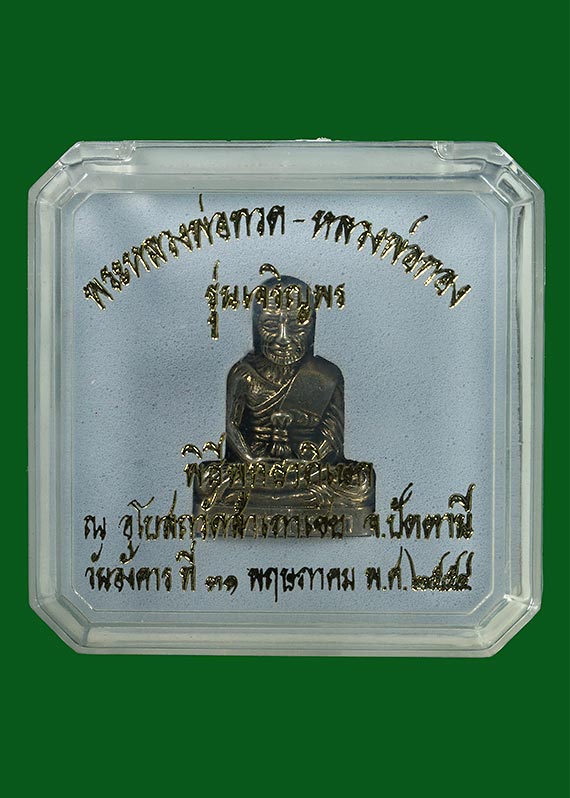 ลอยองค์หลวงพ่อทวด พิมพ์หน้าเลื่อนโบราณ สูง 2.9 ซม. เนื้อ ทองระฆังเก่า หลวง พ่อทอง วัด สำเภาเชยปัตตานี ปี 2554 สวยมากๆ กล่องเดิมๆ พิธีใหญ่ เกจิ ดัง สายใต้ และสายปู่ทวดร่วมปลุกเสกมากมายพิธีใหญ่ตอกโค |