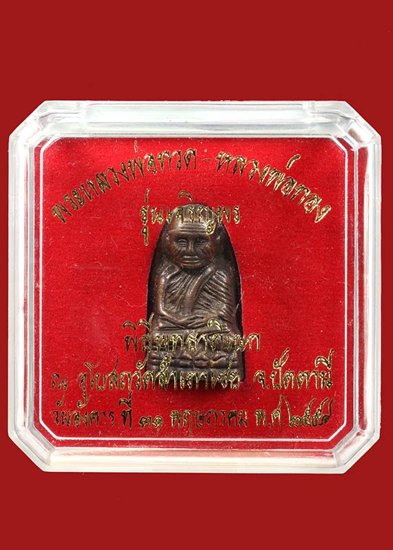 หลวงพ่อทวด พิมพ์เตารีดกลางปั้มซ้ำ เนื้อนวะแก่เงิน รุ่นเจริญพร หลวงพ่อทอง วัดสำเภาเชย ปี 2554 เลข ๑๕๗๕