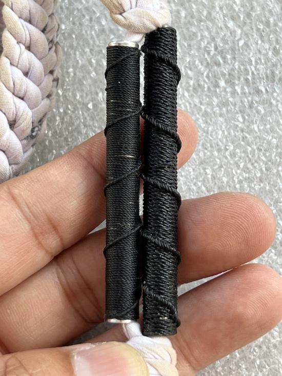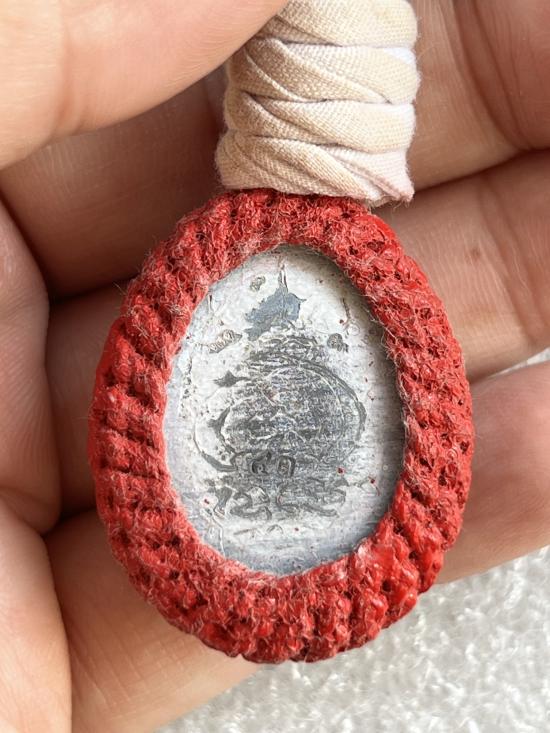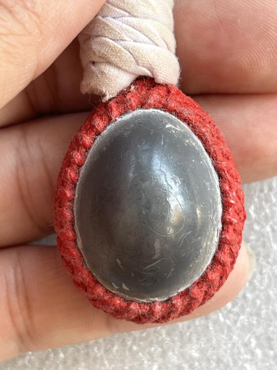 รายละเอียด เชือกคาดเอวถักจากผ้าคลุมโรงนำมาฉีกลงยันต์คาถาที่ผ้าแล้วนำมาตีเกลียวจึงนำมาถักเชือกเป็นเบี้ยแก้ พร้อมตะกรุด2ดอก สร้างตามตำราสายวัดตะโน สภาพสวยเดิมๆ