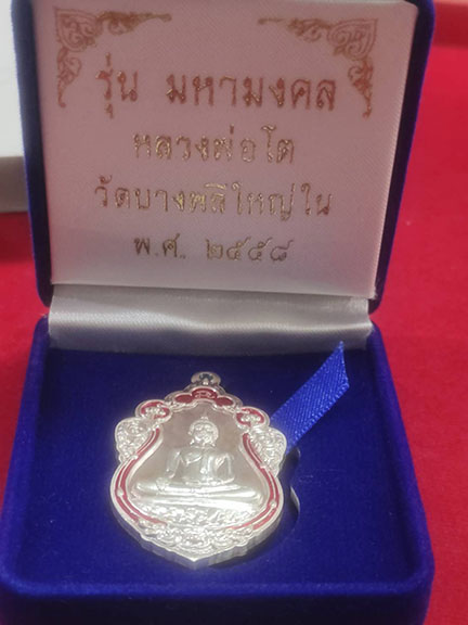 เหรียญหลวงพ่อโตวัดบางพลีใหญ่ใน รุ่นมหามงคล เนื้อเงินลงยาแดง ปี2558 หมายเลข 95