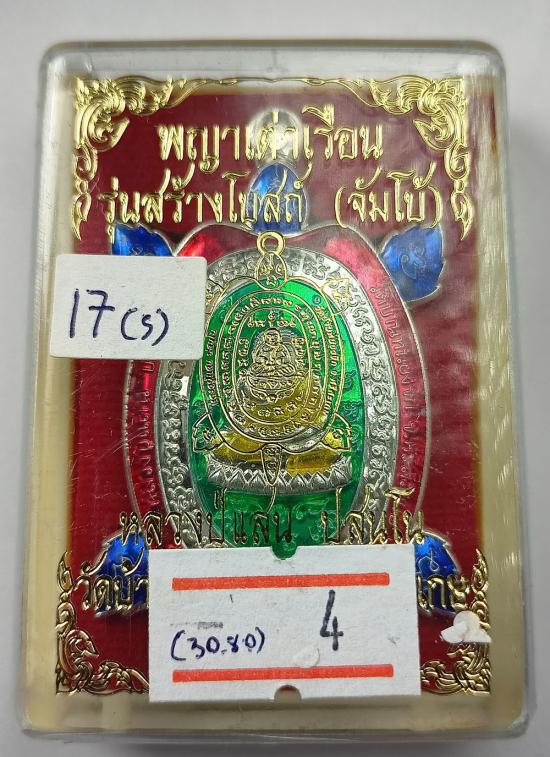 รายละเอียด เหรียญพญาเต่าเรือน (จัมโบ้) หลวงปู่แสน วัดบ้านหนองจิก รุ่น สร้างโบสถ์ เนื้อเงินลงยา4สี เบอร์ 17 พร้อมกล่องครับ (เหรียญจริงใหญ่ น้ำหนัก30.81กรัม สร้างเพียง49องค์)