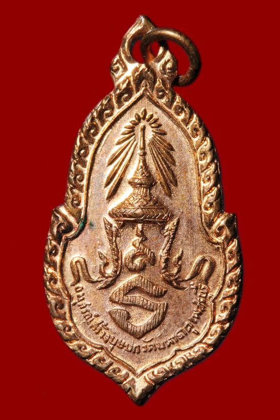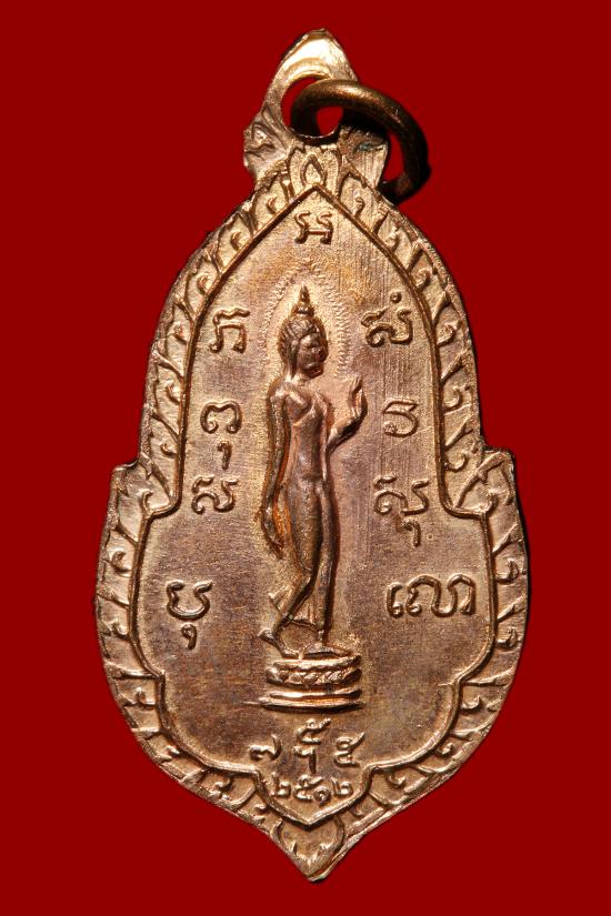 เหรียญอนุสรณ์สร้างบุษบก หลังพระลีลา วัดมหาธาตุเพชรบุรี ปี 2512 ทองแดง
